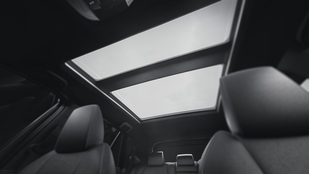 Nas versões XRX, entram BSM, RCTA e PVM 360 graus, além de sensores dianteiros. O teto de vidro com cortina elétrica amplia a sensação de amplitude e favorece a iluminação interna em passeios urbanos.